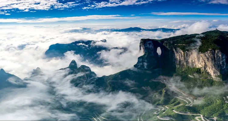 地理位置:張家界市永定區(qū)推薦理由:海拔1500多米,山頂夏季氣溫維持在26℃左右,猶如“自然空調(diào)”。乘坐世界最長的高山客運索道——天門山索道,沿途欣賞壯麗的山景,到達山頂后,還可以體驗玻璃棧道、游玩天門洞,享受清涼的山風。